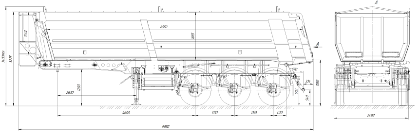 Внутренние размеры кузова, мм: 12500х2250х2050