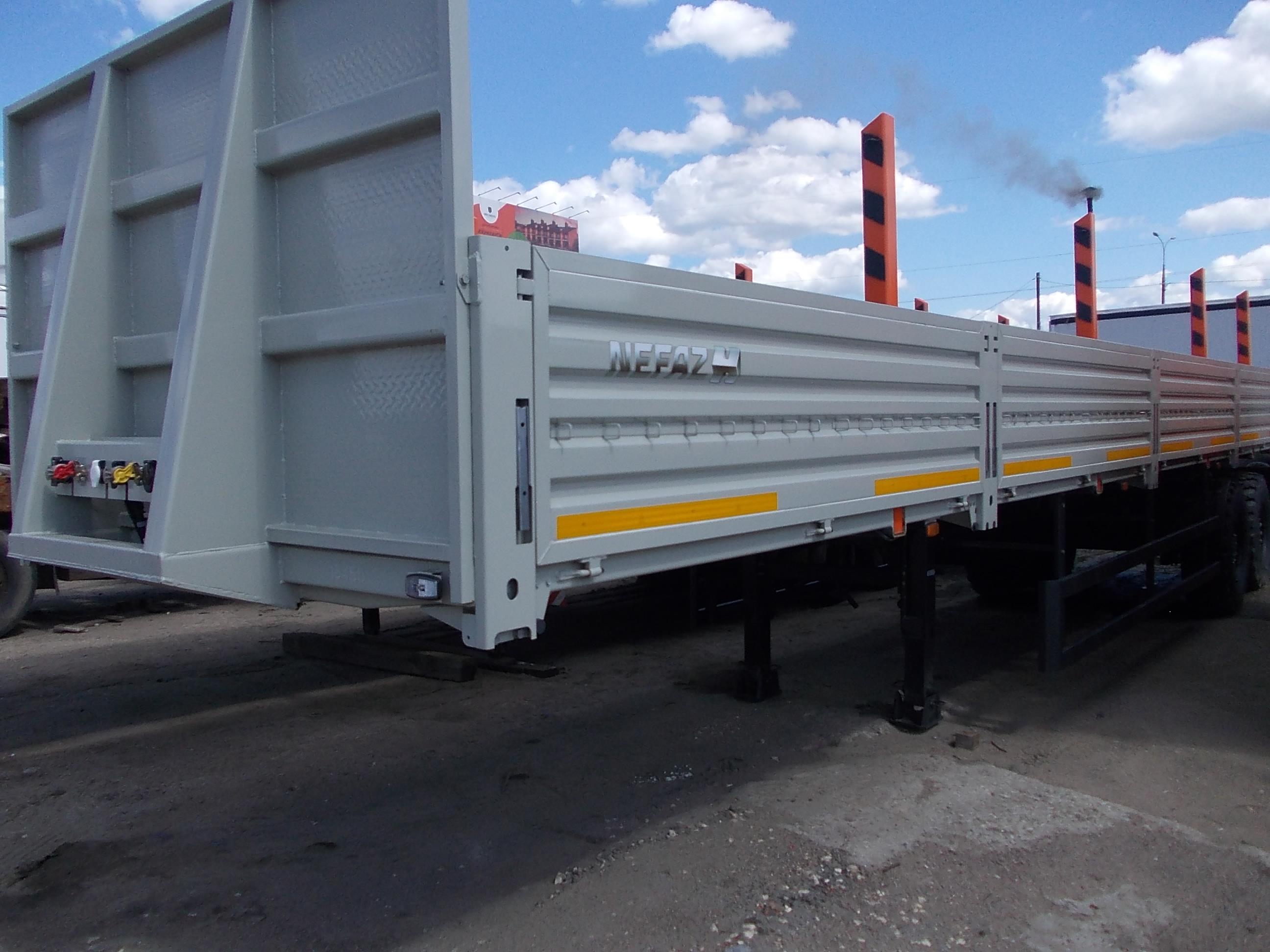 Бортовой, с металлическим настилом пола, V=22 куб. м, односкатная ошиновка, под внедорожный тягач, усиленная подвеска, положение шкворня - 1620 мм. от пер. борта, раздв. стойки, ABS Sorl.