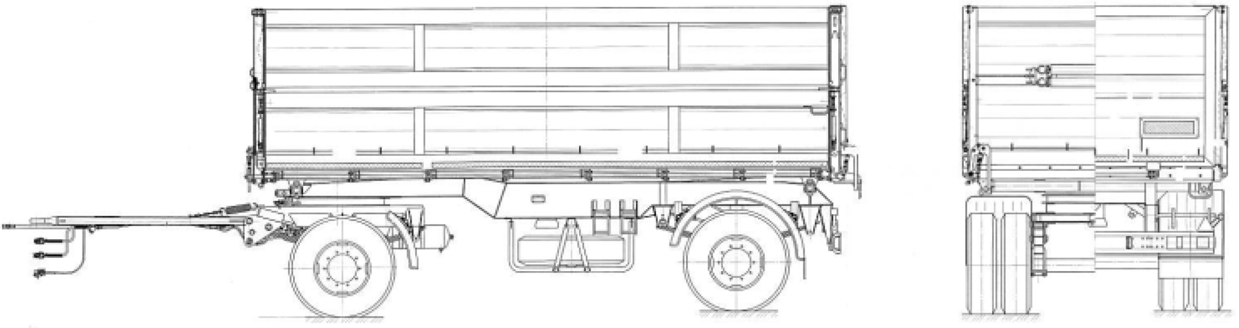 • Гидравлический опрокидывающий механизм с приводом от гидросистемы тягача (трехсторонняя разгрузка)