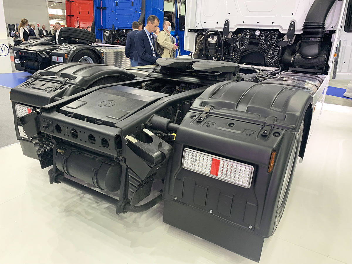 Система нейтрализации ОГ (AdBlue), бак AdBlue 70 л, задний мост Daimler HL6 на пневмоподвеске, МКБ, ECAS, EBS, ESP, ASR, кабина Daimler (высокая), пружинная подвеска кабины, кондиционер, отопитель кабины Вебасто, тахограф российского стандарта с блоком СКЗИ, ДЗК, без бокового ограждения, подготовка под установку УВЭОС, утеплитель кабины, передняя ось Hande, аэродинамический козырек