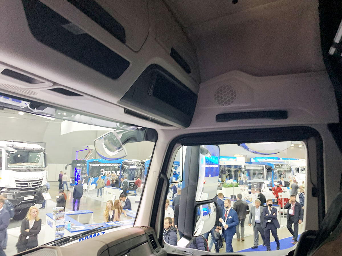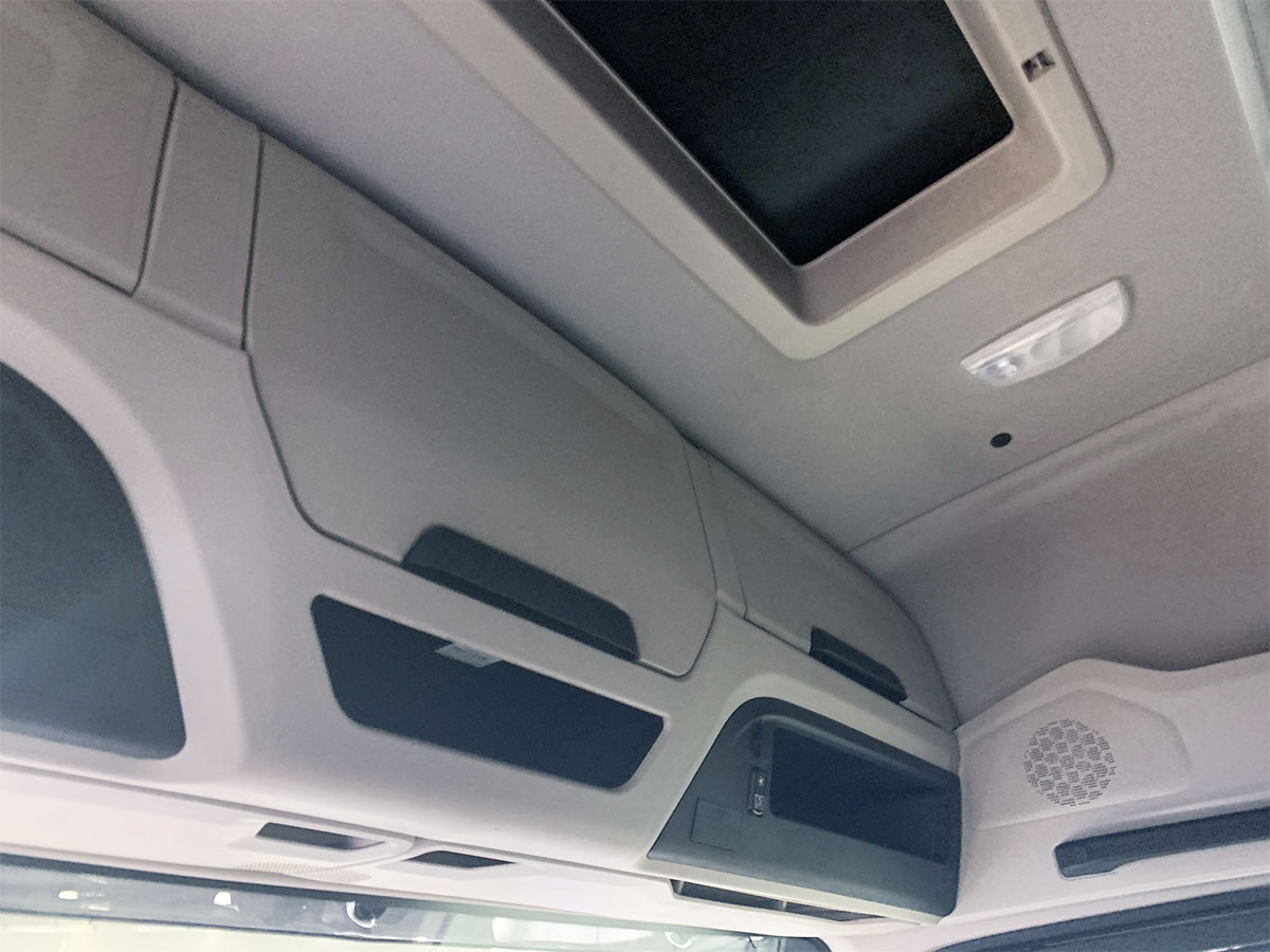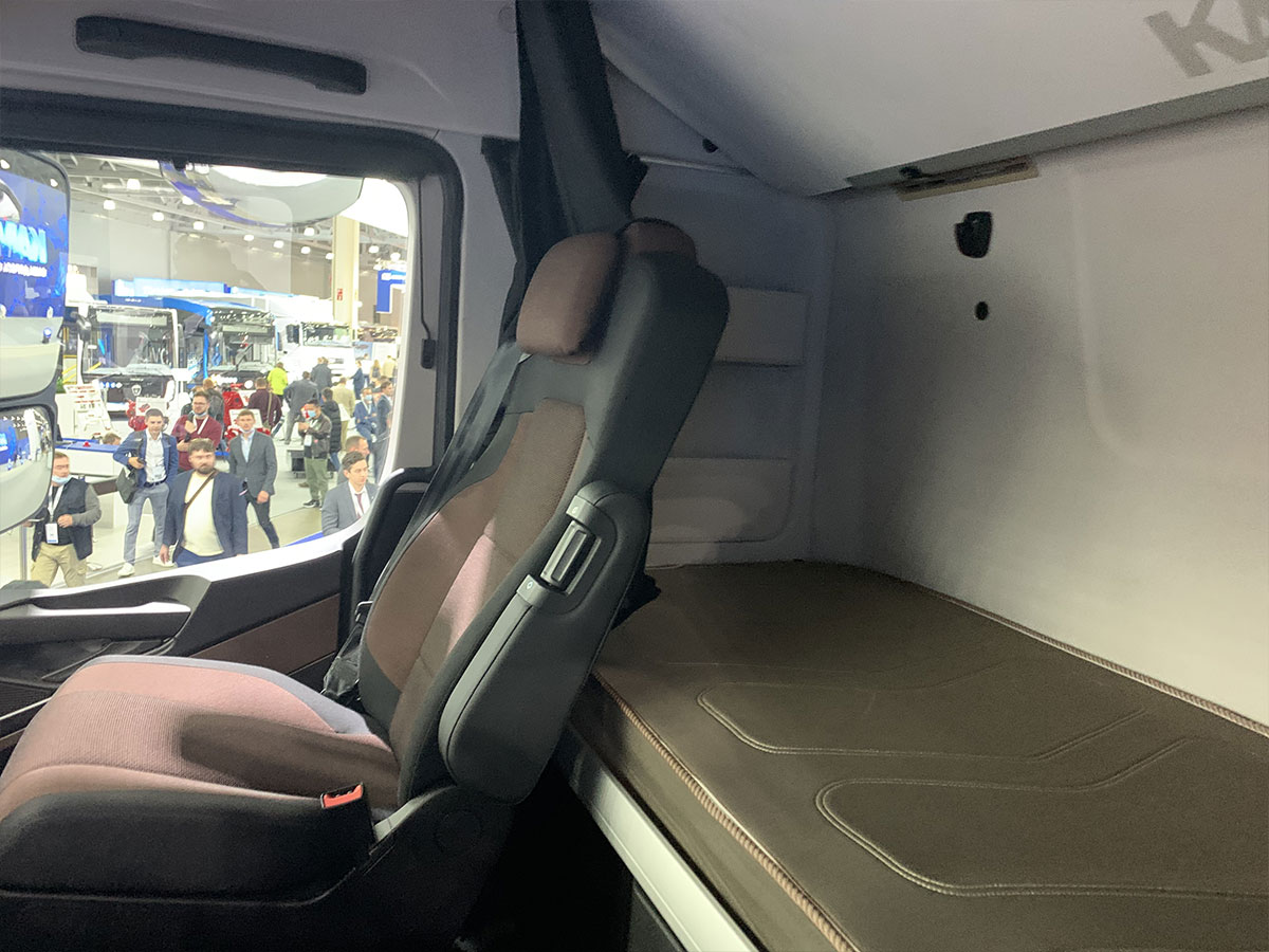 Датчик нагрузки на заднюю ось, датчики износа тормозных накладок, кондиционер, автономный отопитель кабины, электронный тахограф, новая усиленная передняя ось, дополнительное утепление салона, сиденья и матрас повышенной комфортности, держатель запасного колеса слева на раме, аудиоподготовка.