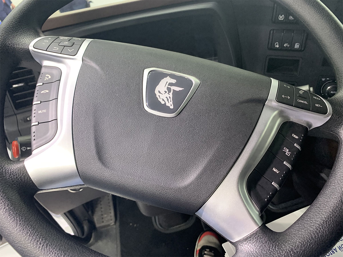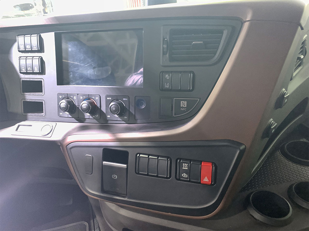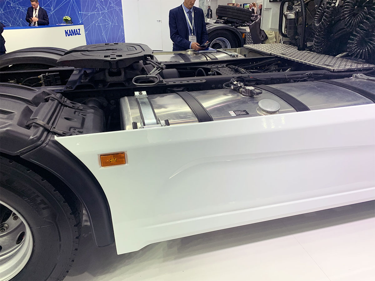 Датчик нагрузки на заднюю ось, датчики износа тормозных накладок, кондиционер, автономный отопитель кабины, электронный тахограф, новая усиленная передняя ось, дополнительное утепление салона, сиденья и матрас повышенной комфортности, держатель запасного колеса слева на раме, аудиоподготовка.