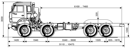 | Технические характеристики шасси КАМАЗ 63501 | 63501-1025 | 63501-1026 |