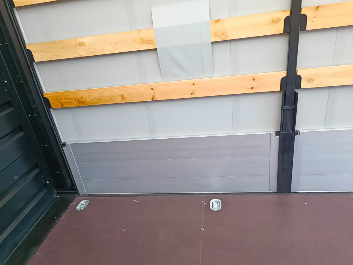 - Съемная поперечина крыши над воротами, позволяет осуществлять загрузку без ограничений по высоте
