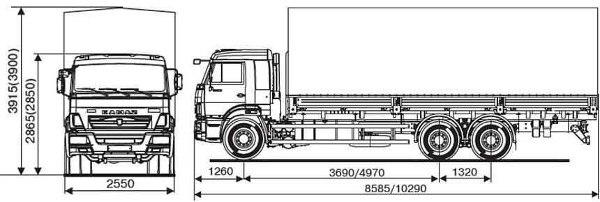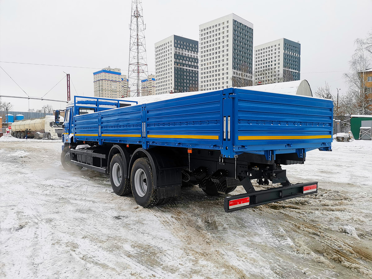 - Платформа: бортовая, с металлическими откидными бортами, в зависимости от комплектации оборудуется каркасом и тентом