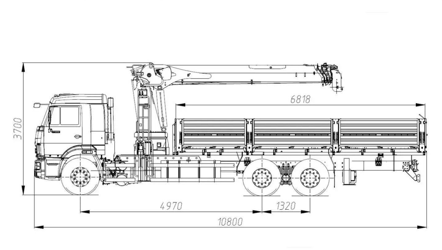 Габаритные размеры, бортового автомобиля КАМАЗ 65117 с КМУ XCMG SQS 250RU-5 (ЕВРО 5) новый