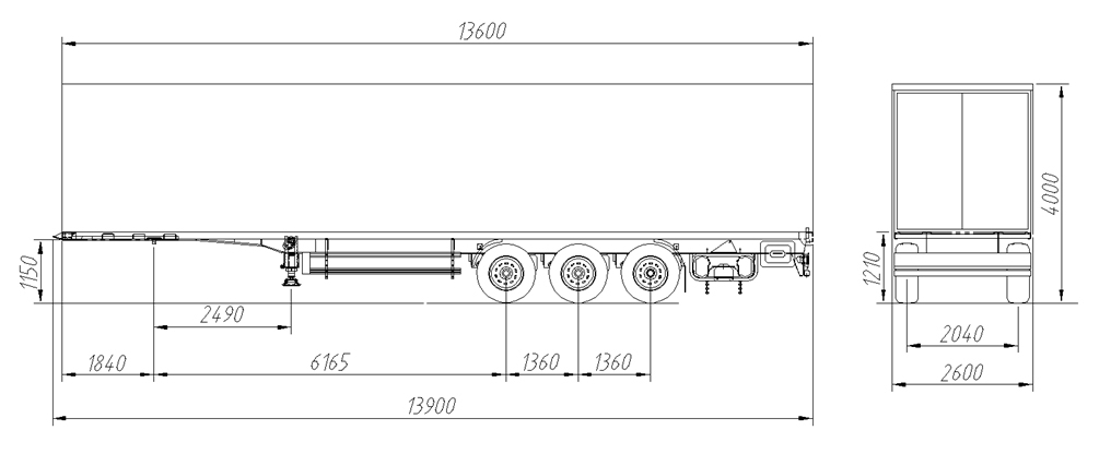 | Внешняя длина кузова, мм | 13 600 |