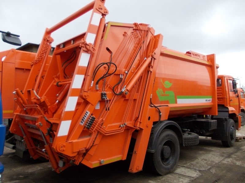 Шасси КАМАЗ 53605 обладает высокой маневренностью и имеет прекрасные для своего класса грузоподъемные характеристики, что делает его незаменимым при стесненном пространстве современных городов с его постоянными пробками. Усовершенствованный загрузочно-уплотняющий механизм «ЭКО-ПРЕСС», применяемый в конструкции мусоровозов, обеспечивает высокую степень уплотнения мусора, малую продолжительность цикла и эффективное подпрессовывание мусора в кузове. Электронное управление позволяет работать в 3-х режимах: ручном, полуавтоматическом и автоматическом. При комплектации системой автоматического управления "МКЗ СА/04" появляется возможность автоматизированного многократных (однократного) циклов уплотнения ТБО. Оно имеет защиту от неправильного включения, при срабатывании которой выключается насос. Выталкивающая плита расположена в уплотнительном отсеке кузова в прямолинейных направляющих. Движение плиты осуществляет телескопический гидроцилиндр двойного действия. Плита имеет износостойкие элементы.