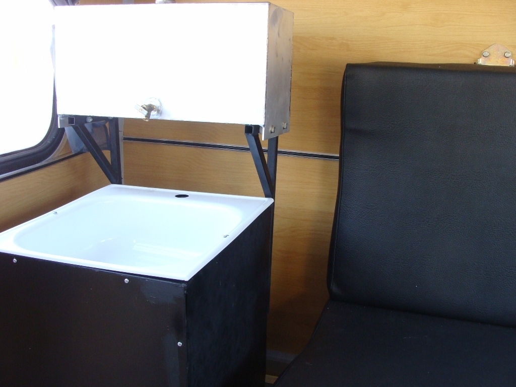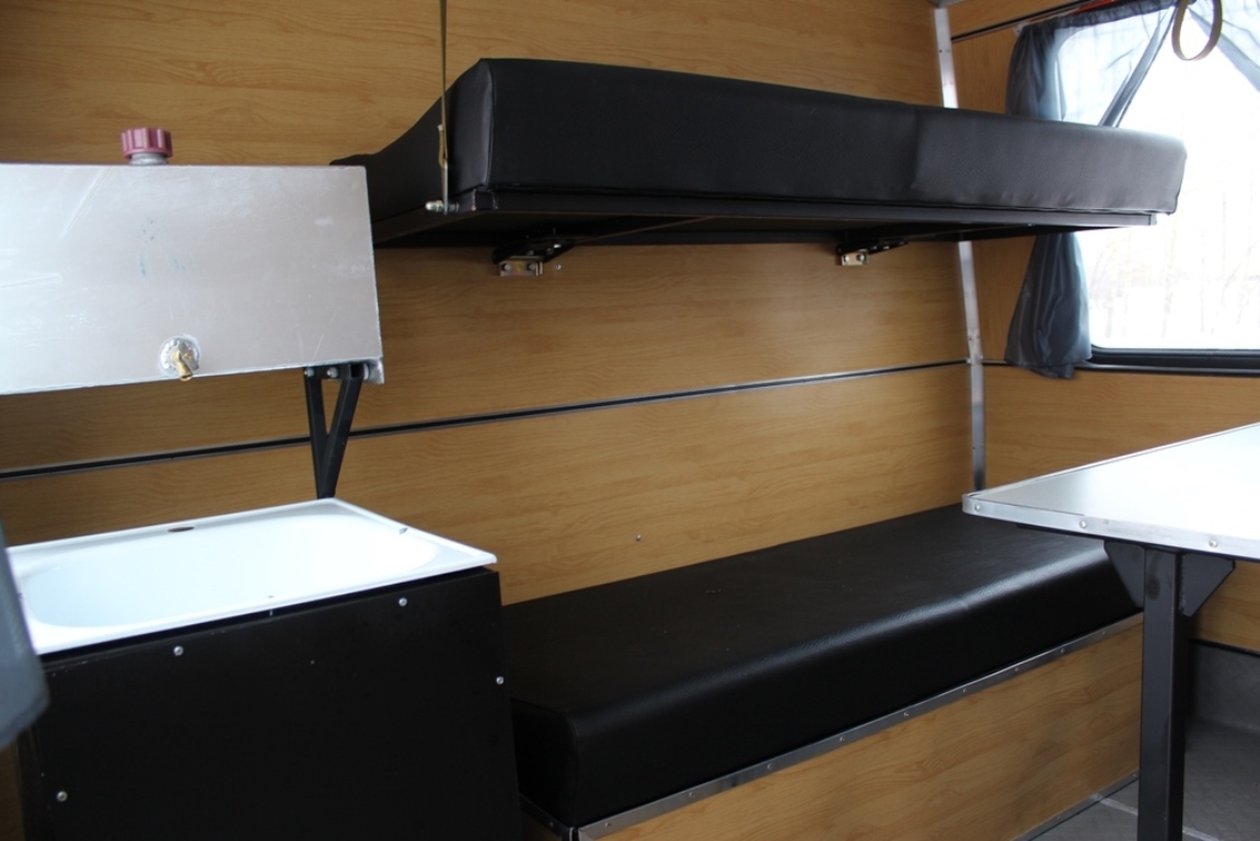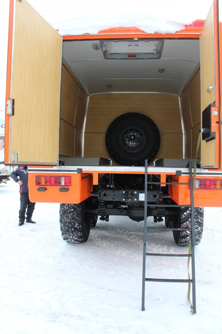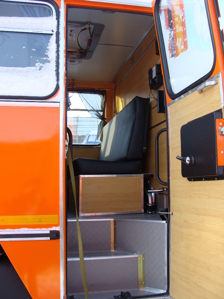 Отсеки разделены глухой перегородкой. В жилом отсеке установлены двухъярусные лежаки для отдыха: нижний выполнен в виде рундука, верхний подвешивается на ремнях к потолку, в убранном положении служит спинкой для нижнего лежака. Кроме того имеются стол, мойка с баком для воды, отопитель салона. Автомобиль не предназначен для перевозки пассажиров.