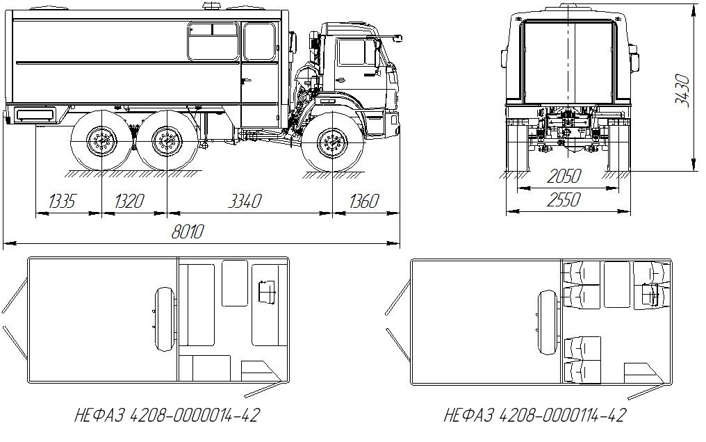 НЕФАЗ-4208-14-42 предназначен для отдыха бригады аварийно-технической службы в жилом отсеке и перевозки оборудования в грузовом отсеке.