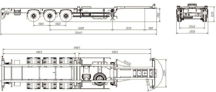 Низкорамный полуприцеп-контейнеровоз применяется для перевозки большегрузных контейнеров 2x20ft, 1x40ft, включая контейнеры типа «high cube».