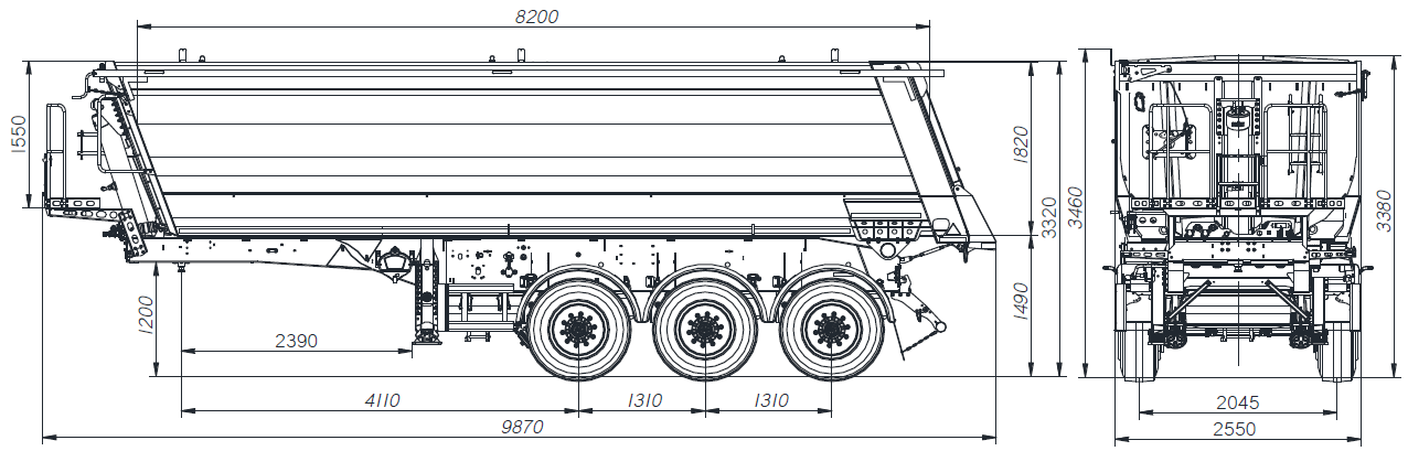 Внутренние размеры кузова, мм: 12500х2250х2050