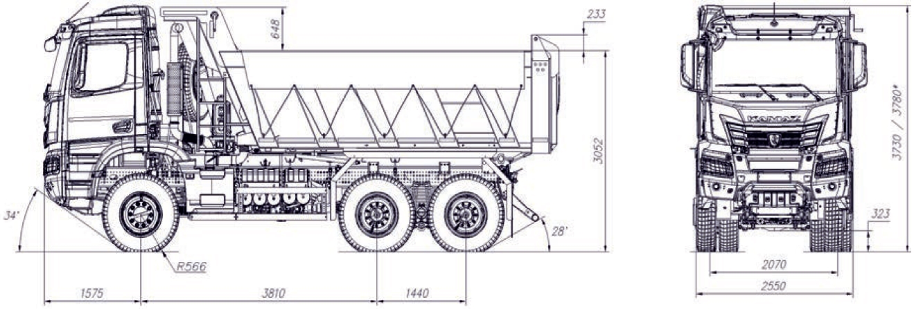 Габаритные размеры самосвала КАМАЗ 65952-20001-92:
