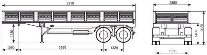 | Внутренний размер платформы, мм | 9250*2480*2510 |